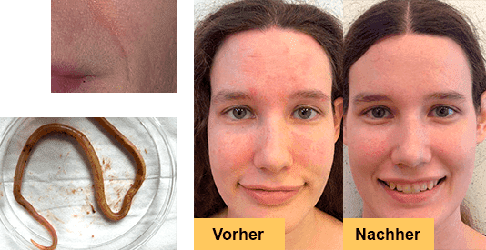 Viele Jahre lang litt ich an Dermatitis und Allergien, kein Mittel half mir. Ich konnte nicht einmal im Sommer offene Kleidung tragen, weil alle Schultern und Arme mit Allergien bedeckt waren. Ein Bekannter riet Nemanex und sagte, dass mein Problem durch Parasiten verursacht werden könnte. Nach ein paar Einnahmen von Nemanex kam ein Haufen von Parasiten aus mir heraus. Ich bin schockiert! Aber die Hauptsache ist, dass die Haut jetzt in perfekt Zustand ist.